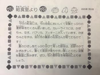 嬉しい気持ちですべて読ませていただきました。2学期の給食も楽しみにしていてください!