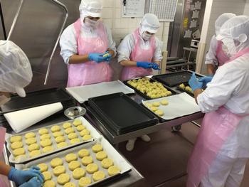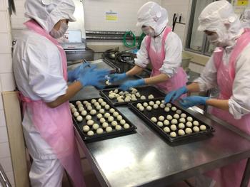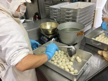 調理員さんと栄養士で協力して、2000個弱のお団子を全て手で丸めました!