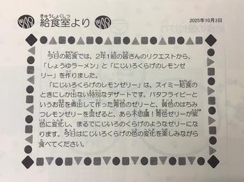 しょうゆラーメン あおのりまめポテト にじいろくらげのレモンゼリー ぎゅうにゅう