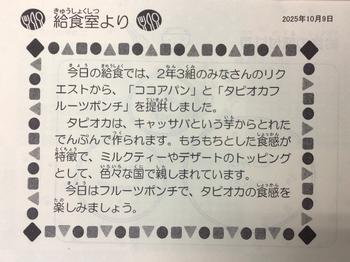 ココアパン トマトポトフ タピオカフルーツポンチ ぎゅうにゅう