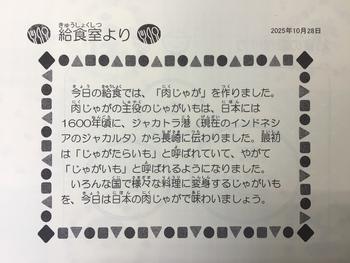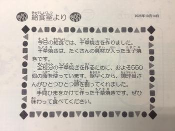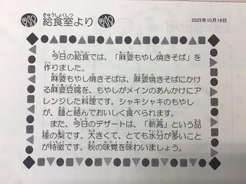 シンプルな組み合わせですが、満足感のある献立でした。2年3組の皆さん、リクエストしていただきありがとうございました!