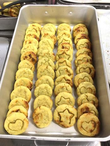 金メダルポテトは、まんまるに成型したスイートポテトに、ヒマラヤン・星・ハートのクッキー型でスタンプを押しました。