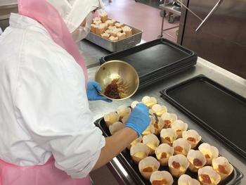 ジャムがこぼれてしまわないように、生地と生地の間にジャムを挟むような形でカップに流し入れました。