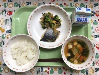ひじきごはん さばのごましょうゆやき はくさいのうめおかかあえ みそしる ぎゅうにゅう