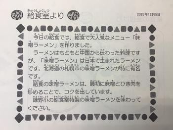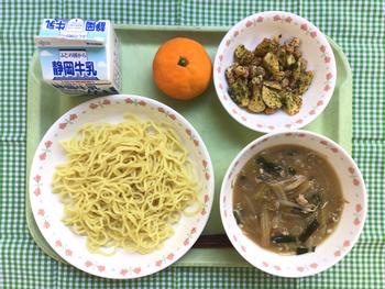 緑野小の給食の味噌ラーメンは、大人も子供も大好きな定番メニューです。