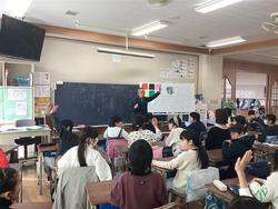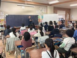 聴覚障害者の高島良宏さんにゲストティチャーにきていただき、楽しく手話を学びました。一人一人の名前を空書きして、高島さんが答えてくださったり、色を手話で表現したりと充実した時間になりました。