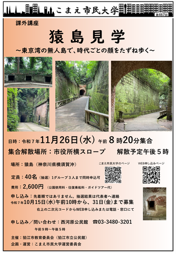 内容:猿島見学~東京湾の無人島で、時代ごとの顔をたずね歩く~