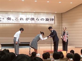 合唱祭がありました。生徒たちは、クラスの仲間とともに練習を積み上げ、気持ちのこもった合唱を披露してくれました。どのクラスの合唱も素晴らしいものでした。また、1組の生徒たちは、迫力と一体感のある和太鼓も披露してくれました。吹奏楽部も素晴らしい演奏をし、楽しませてくれました。合唱祭には、多くの保護者、ご来賓の皆様、学校関係者の皆様にお越しいただきました。ありがとうございました。