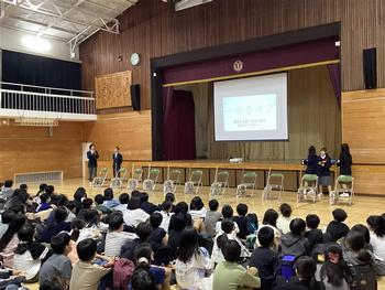 小学校6年生を対象にした「小6体験」を実施しました。「小6体験」では、授業を参観した後、生徒会による学校紹介、部活動紹介、部活動体験をしました。生徒会による学校紹介はクイズを取り入れ、楽しみながら学校の様子が分かるように工夫をしてくれていました。部活動紹介も、劇を取り入れ、盛り上がりました。部活動体験も、2年生の生徒が中心になりながら6年生に優しく教えている様子が印象的でした。