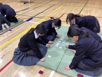 1学年で百人一首大会を行いました。札を取るたびに歓声を上げ、大いに盛り上がりました。和歌に込められた古典の文章の意味を考える機会にもなり、学びと楽しさを両立した行事となりました。