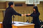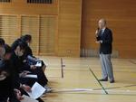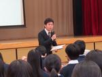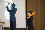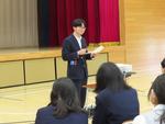 今日の月曜日の朝は生徒会朝会がありました。生徒会長の2年生山本百夏さんからの生徒会活動への呼びかけに始まり、健康委員から劇による「健康管理」についての訴え、そして表彰と盛りだくさんの内容でした。特に、最後は躰道で狛江市民賞に輝いた3年生の松本伊織さんのパフォーマンスしながらの入場は会場が一気に熱気に包まれました。