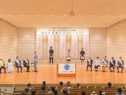 エコルマホールにて、“社会を明るくする運動” 狛江市推進大会が行われました。中学生啓発標語で本校1年生が優秀賞に選ばれ、授賞式が行われました。