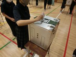 演説後は、本物の投票箱で投票を行いました。