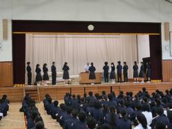 合唱部と吹奏楽部の表彰が行われました。おめでとうございます。