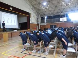 6時間目に、火災を想定した避難訓練を行いました。生徒たちは、ハンカチで口を塞ぎ、素早く避難を行いました。