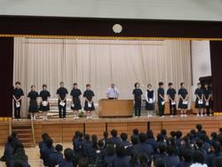 合唱部と吹奏楽部の表彰が行われました。おめでとうございます。