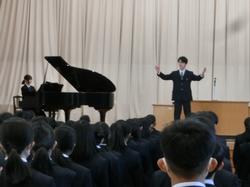 16日(木)には音楽特別授業として、指揮者の田久保裕一先生に合唱指導をしていただきました。