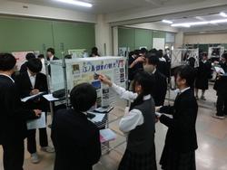 発表はクラスごとのグループ発表と、すべてのポスターを特活室に展示して担当者が説明を行う