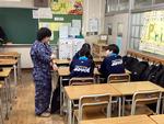 6時間目に、火災を想定した避難訓練を行いました。生徒たちは、ハンカチで口を塞ぎ、素早く避難を行いました。
