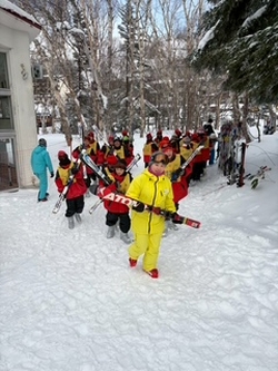 無事に1日目の講習を終えました。大半の班が悪戦苦闘していましたが、そこから垣間見える表情は、充実感に満ちていました。ただ、雪は降っていないのですが、とにかく気温が低くて、1時間もすると足先や指先が冷え切ってきます。宿の方もこんなに低いのは数年ぶり…と、おっしゃっていました。子どもたちは、冷え切った身体を温泉♨️に入りゆっくりしています。その後夕食、レクと続きます。